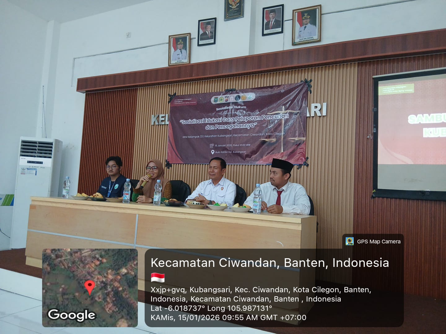 Cilegon - Bhabinkamtibmas Kelurahan Kubangsari AIPDA Asep Karyudin, menghadiri acara sosialisasi edukasi cara pelaporan pencurian dan pencegahannya di Kantor Aula Kelurahan Kubangsari, Ciwandan. Kamis (15/01/2026).
