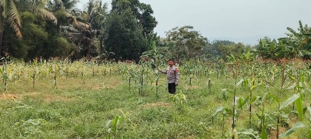 Personil Bhabinkamtibmas Kel Kotabumi Polsek Purwakarta Bersama Warga Cek Lahan Tanaman Jagung