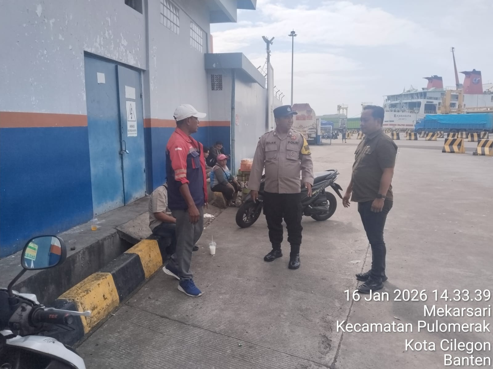 Cilegon - Personel Polsek Kskp Merak Polres Cilegon Polda Banten melaksanakan sambang dan patroli kawasan pelabuhan merak dalam rangka menjaga Harkamtibmas di Kawasan Pelabuhan Merak, Jumat (16/01/2026).