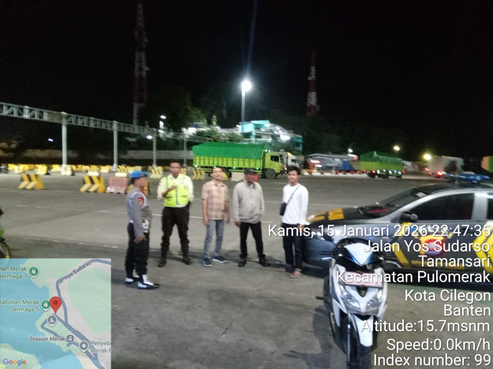 Cilegon - Personil Polsek Kskp Merak Polres Cilegon melaksanakan patroli di kawasan pelabuhan merak memberikan rasa aman dan damai, Jumat (16/01/2026)