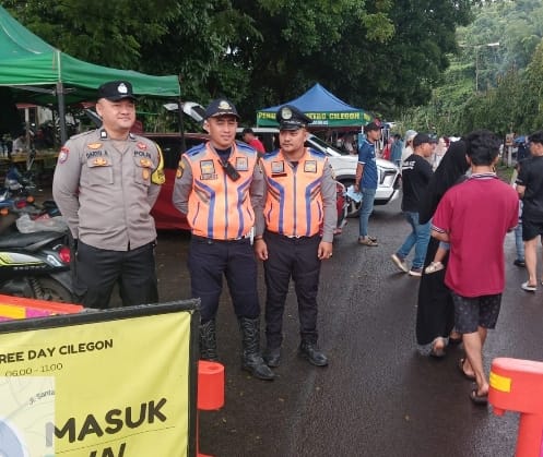 Pastikan Arus Lalu lintas Lancar Personil Polsek Purwakarta dan Dishub Sibergitas memperlancar arus di Acara Car Free Day (CFD)