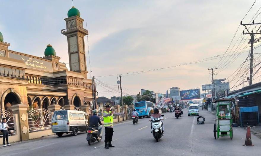 Personel Polsek Anyar lancarkan Arus Kendaraan Dengan Melakukan Pengaturan Lalu Lintas