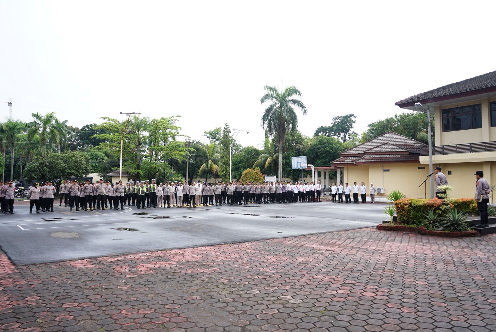 Apel dipimpin oleh Kabag Ops Polres Cilegon AKP Chairul Anam, S.H., M.H., M.Si., selaku perwakilan pimpinan, dengan penanggung jawab kegiatan Kapolres Cilegon AKBP Dr. Martua Raja Taripar Laut Silitonga, S.H., S.I.K., M.Si. Apel diikuti oleh para Pejabat Utama Polres Cilegon, para perwira, serta seluruh personel Polres dan Polsek jajaran.