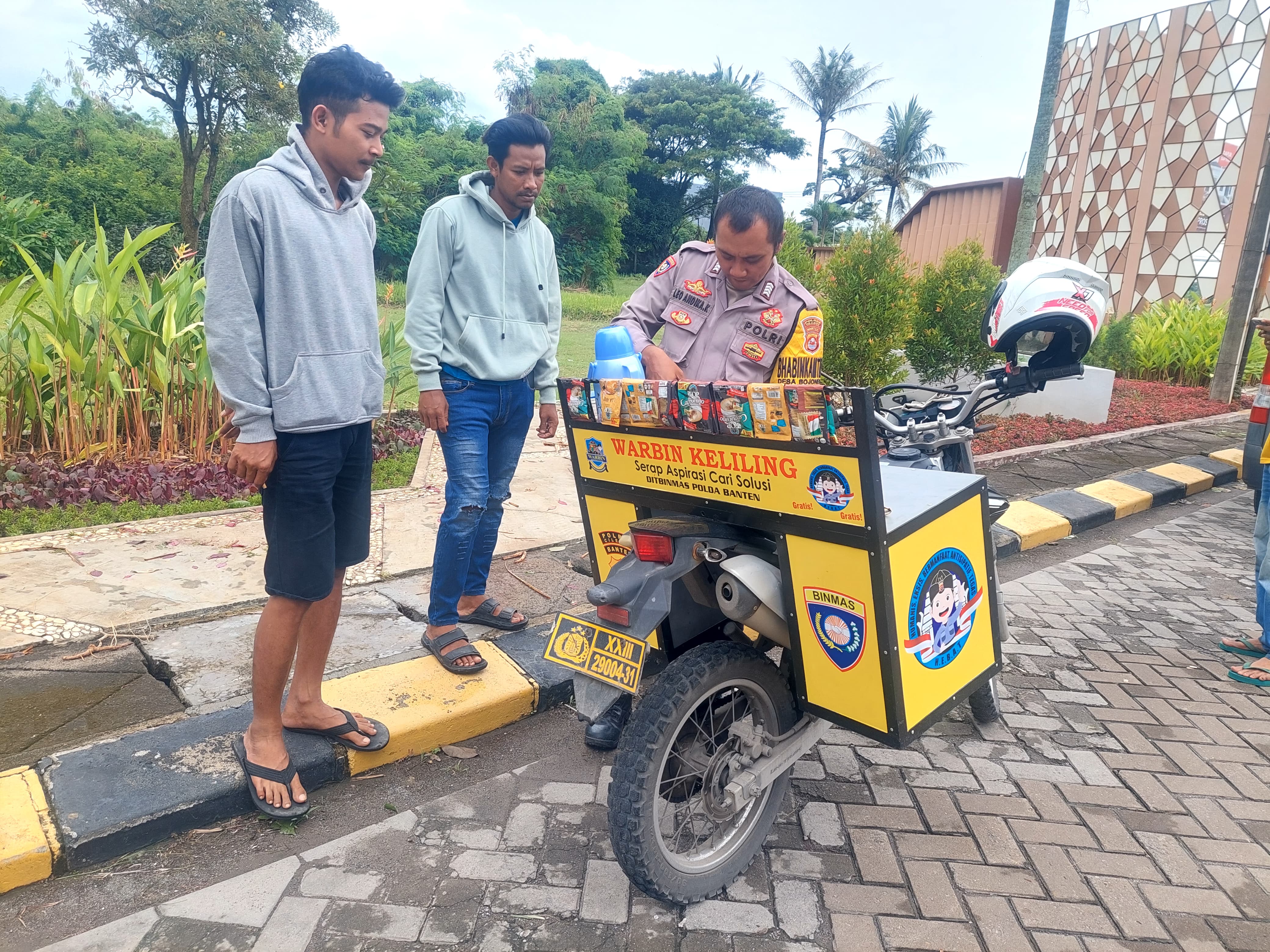 Kapolres Cilegon Polda Banten AKBP Dr Martua Raja Taripar Laut Silitonga melalui Kapolsek Bojonegara Polres Cilegon Polda Banten IPTU Muhammad Lazim Satria Wibowo Mengatakan Warung Bhabinkamtibmas adalah tempat untuk warga menyampaikan saran dan masukan kepada polisi Bhabinkamtibmas di desa. Suasana yang dibuat adalah santai dan bersahaja sebagaimana kumpul kumpul di warung"Fungsi dari kegiatan ini adalah untuk menjaring informasi yang berkembang di masyarakat dan menjadi garda terdepan dalam penyelesaian masalah yang ada di lingkungan warga terpencil agar tidak berkembang menjadi masalah yang lebih besar dan dapat mengganggu harkamtibmas.