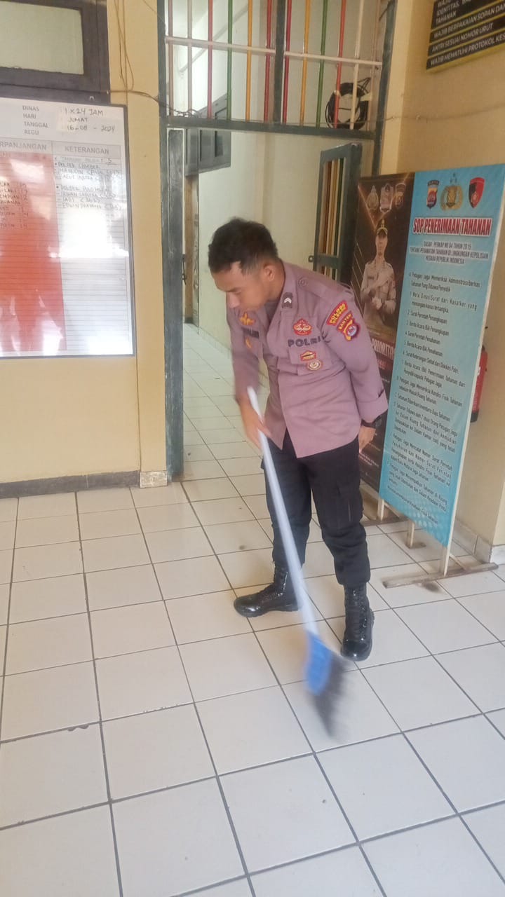 Kegiatan kebersihan  tahanan ini adalah salah satu bentuk  tugas dan tanggung jawab setiap personil anggota sattahti dalam menjaga dan merawat tahanan yang ada dirutan polres cilegon.
