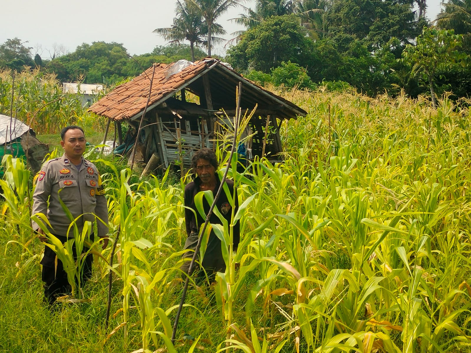 melihat lahan jagung pok tani sinarjaya kecamatan.puloampel Desa sumranja oleh Bhabinkamtibmas Polsek Puloampel