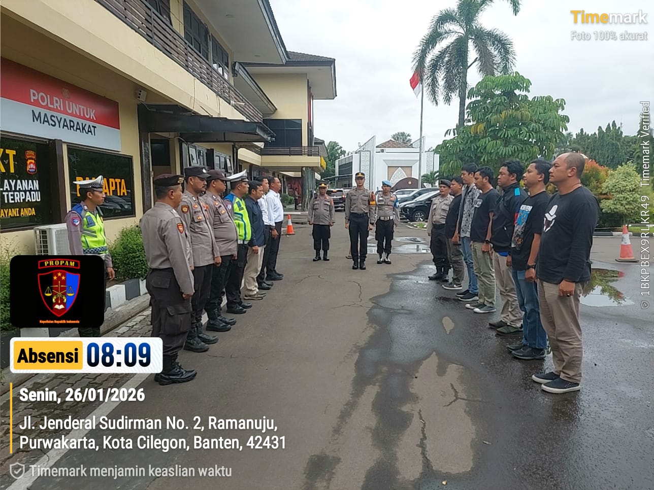Kapolres Cilegon Polda Banten AKBP  Dr.Martua Raja Taripar Laut Silitonga melalui Kasatreskrim Polres Cilegon AKP Yoga Tama mengatakan, “kegiatan personel satreskrim polres cilegon melakukan piket di penjagaan pintu masuk Mako Polres Cilegon mengantisipasi adanya kejahatan yang menggangu kenyamanan dan keamanan mako Polres Cilegon dalam melakukan pelayanan kepada masyarakat kota Cilegon ".