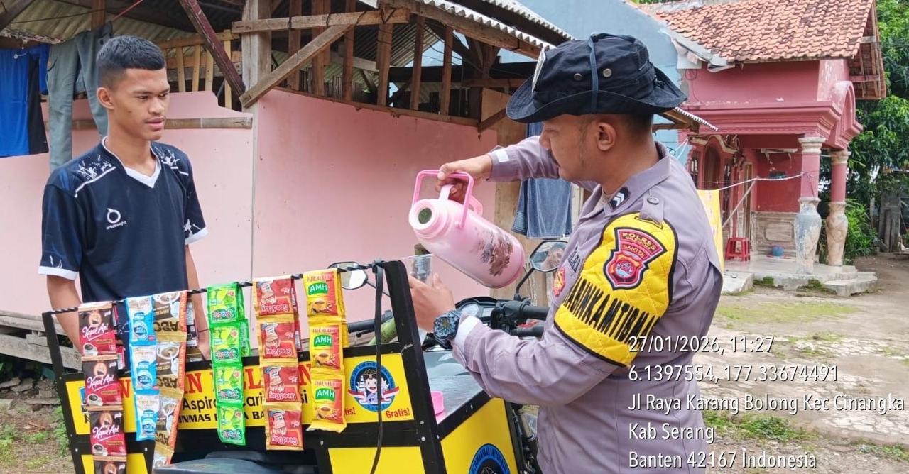 Polres Cilegon ~ Bhabinkamtibmas Polsek Cinangka Polres Cilegon Polda Banten Sambang dan silaturahmi dengan masyarakat merupakan salah satu tugas seorang bhabinkamtibmas untuk mengetahui situasi Kamtibmas Desa binaan dalam menjalin silaturahmi dengan Warga Ds Cinangka di Warung Bhabinkamtibmas, Selasa (27/01/2026).
