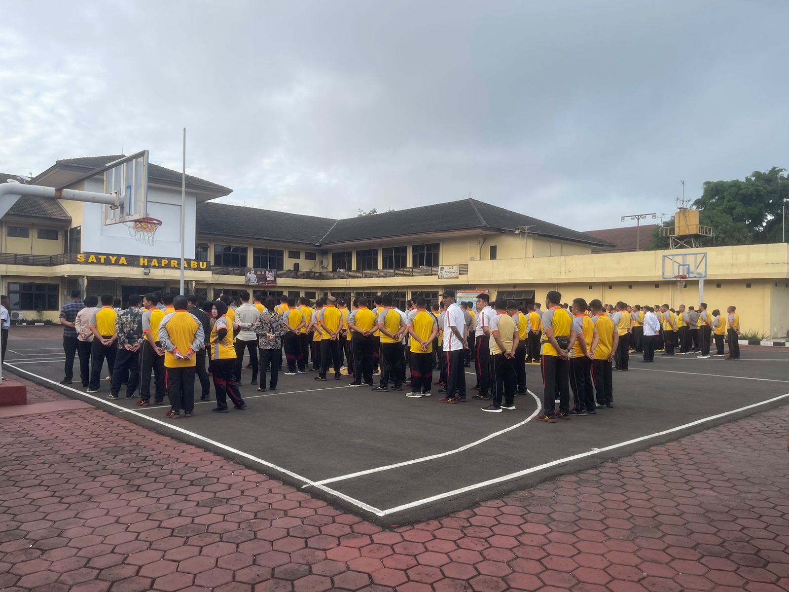 apel pagi yang dilaksanakan di Lapangan Apel Satya Haprabu Polres Cilegon