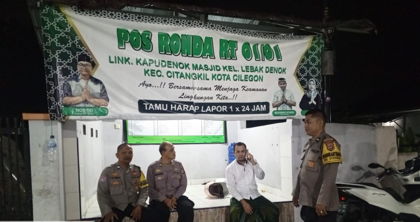 Kapolres Cilegon Polda Banten AKBP Dr. Martua Raja Taripar Laut Silitonga Melalui Kapolsek Ciwandan Polres Cilegon Polda Banten KOMPOL Achri Dwi Yunito mengatakan bahwa personelnya memantau kegiatan Siskamling di Daerah binaannya untuk menjaga stabilitas keamanan dan ketertiban masyarakat.