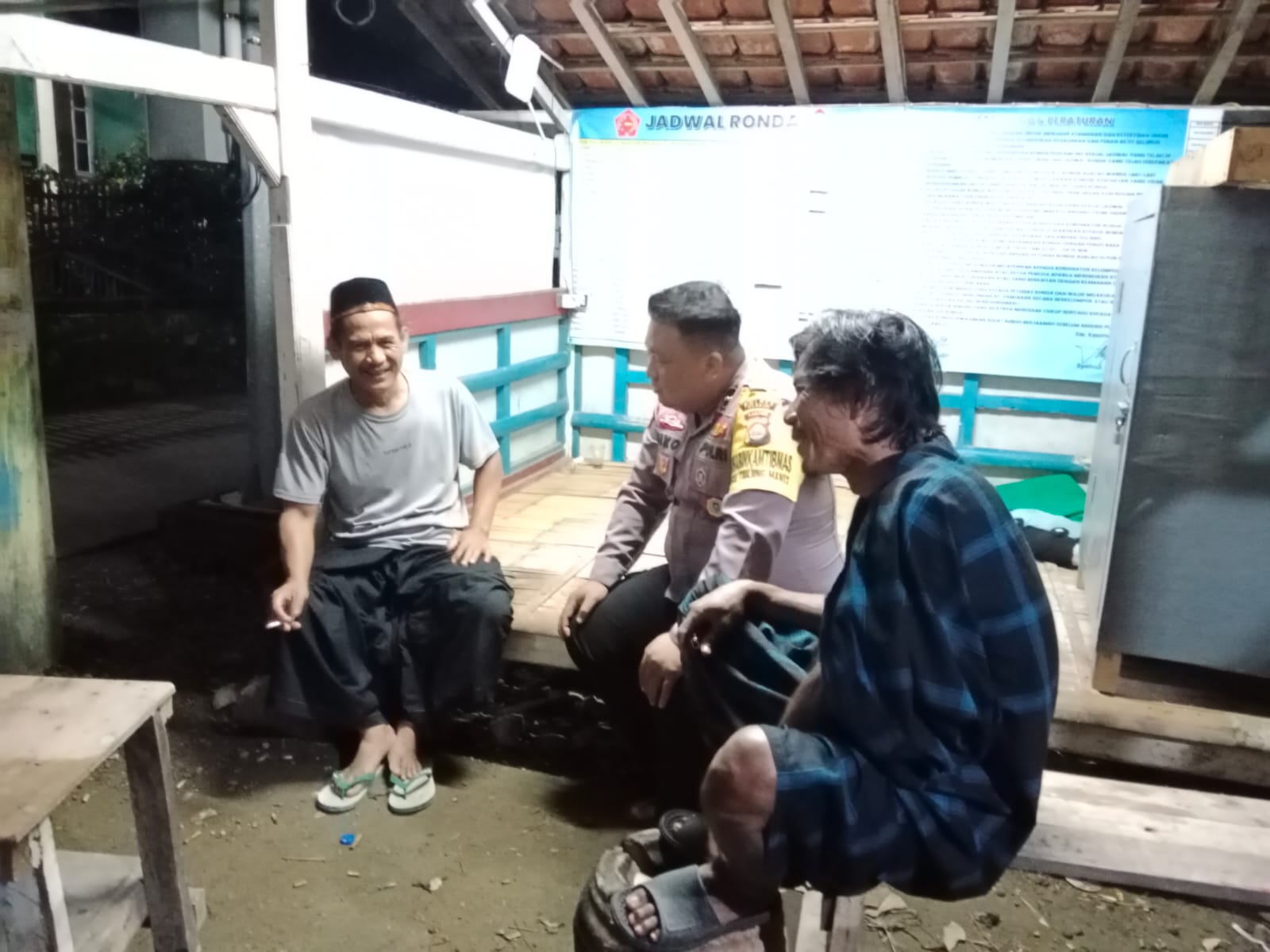 Cilegon - Personel Bhabinkamtibmas Polsek Anyar Polres Cilegon Polda Banten melaksanakan sambang Ronda Siskamling Dalam rangka menjaga Harkamtibmas dan Sebagai bentuk mendukung Program Quick Wins Presisi Polri, Sabtu (14/02).