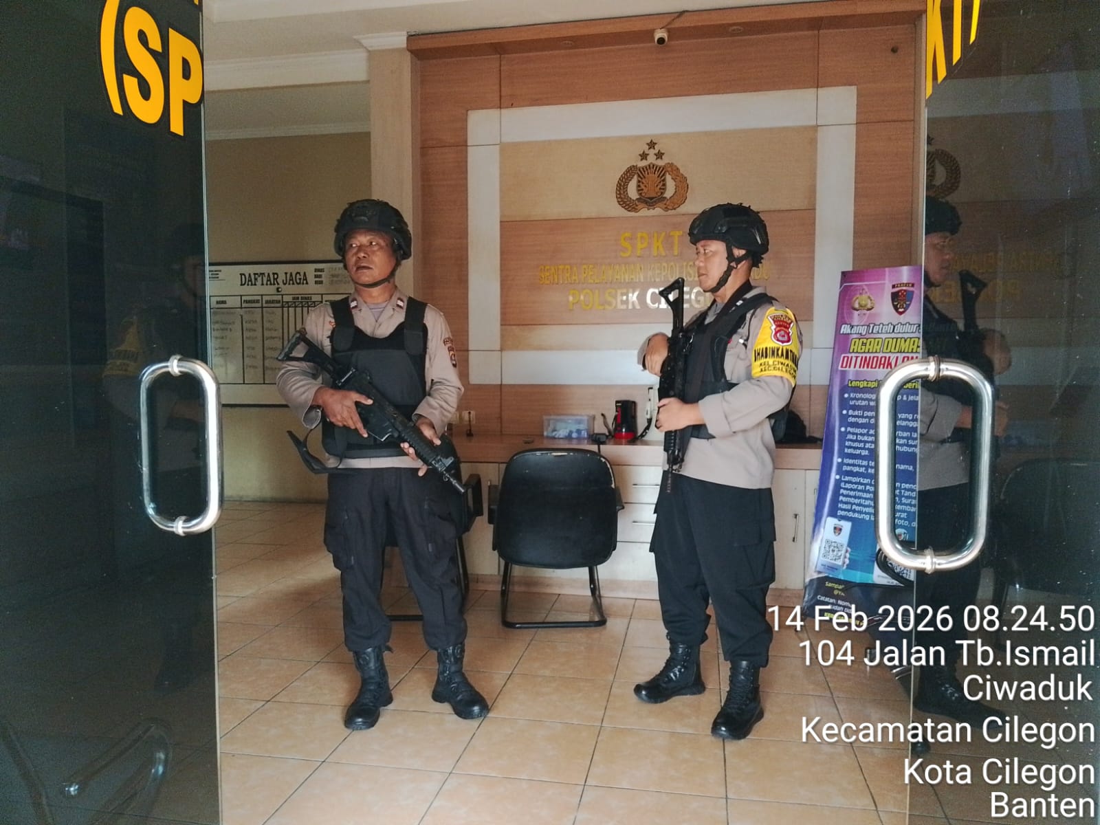Cilegon – Polres Cilegon Polda Banten Guna mengantisipasi adanya potensi ancaman dan gangguan terhadap keamanan kantor maupun keselamatan personel piket jaga, Personel Polsek Cilegon Polres Cilegon selalu tingkatkan kesiapsiagaan dan kewaspadaan dengan rutin menggelar kegiatan Sistem Pengamanan Mako (Sispam Mako), Sabtu (14/02/2026).