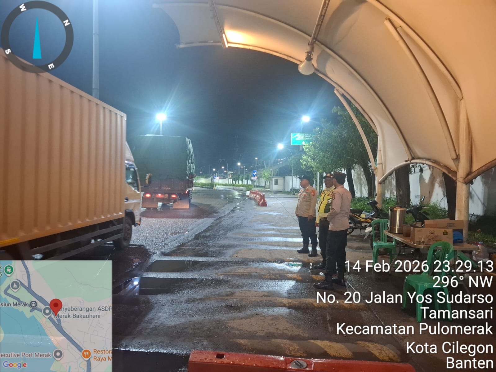 Cilegon - Personil Polsek Kskp Merak Polres Cilegon melaksanakan patroli di kawasan pelabuhan merak memberikan rasa aman dan damai, Minggu (15/02/2026)