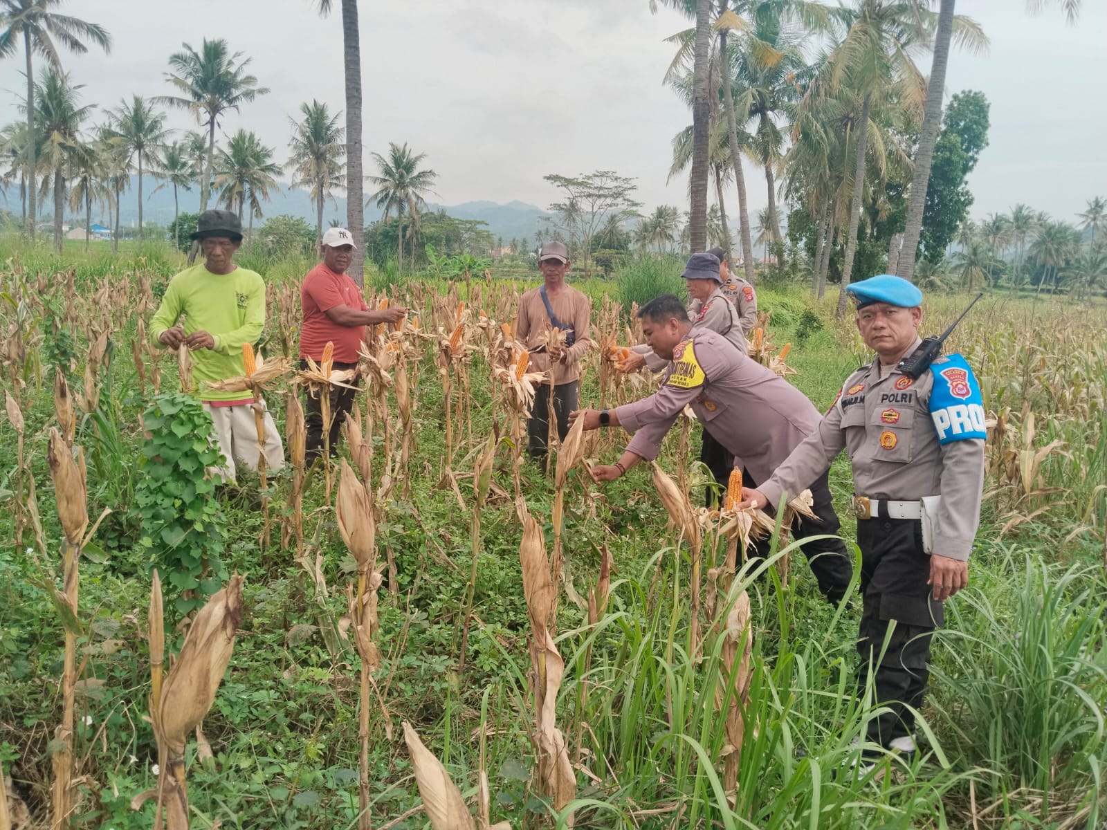 Melalui personil polri berperan aktif dalam mendukung upaya masyarakat meningkatkan ketahanan pangan. Kami hadir untuk memberikan rasa aman, sekaligus ikut memantau langsung kondisi pertanian di desa,” ujar Kapolsek