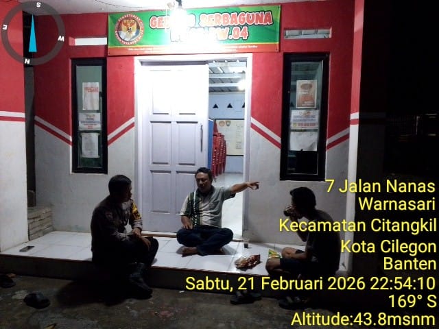 Kapolres Cilegon Polda Banten AKBP Dr. Martua Raja Taripar Laut Silitonga Melalui Kapolsek Ciwandan Polres Cilegon Polda Banten KOMPOL Achri Dwi Yunito mengatakan bahwa personelnya memantau kegiatan Siskamling di Daerah binaannya untuk menjaga stabilitas keamanan dan ketertiban masyarakat.