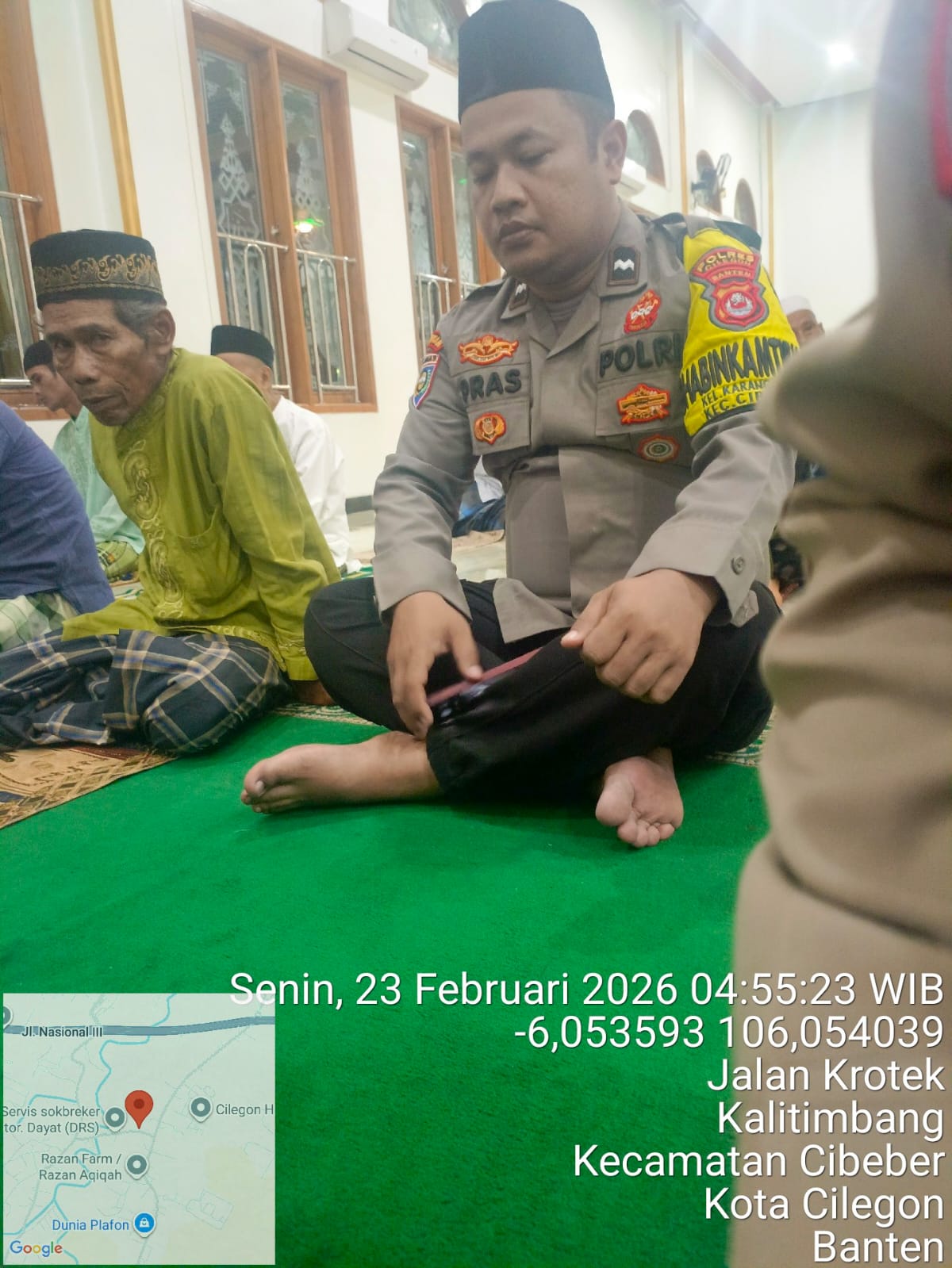 kegiatan tersebut, Personil Polsek Cibeber turut berbaur dengan jemaah masjid
