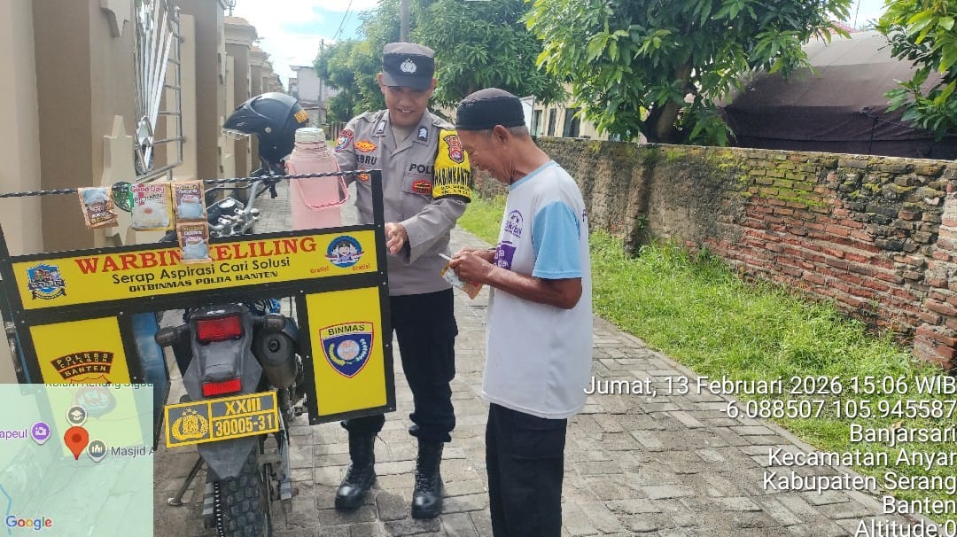 Anggota Bhabinkamtibmas Polres Cilegon bersama Kanit Bintibsos melakukan kegiatan penyerahan sarana kontak untuk:
