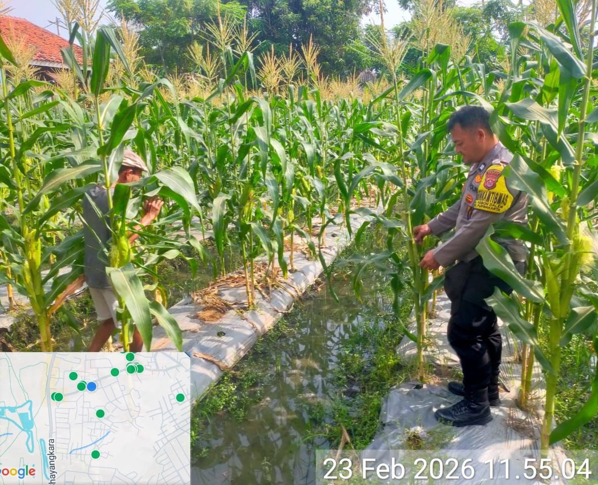 Polres Cilegon-Polda Banten. Senin 23 Februari 2026 Bhabinkamtibmas Polsek Purwakarta Polres Cilegon, melakukan pemeriksaan dan pendampingan rutin terhadap lahan tanaman jagung yang terletak di Jalan Oksigen, Komplek Perumahan Krakatau Steel, Kecamatan Purwakarta Kota, Kota Cilegon. Kegiatan ini dilakukan dalam rangka memperkuat sinergitas antara Polri dan masyarakat dalam upaya menjaga ketahanan pangan daerah.
