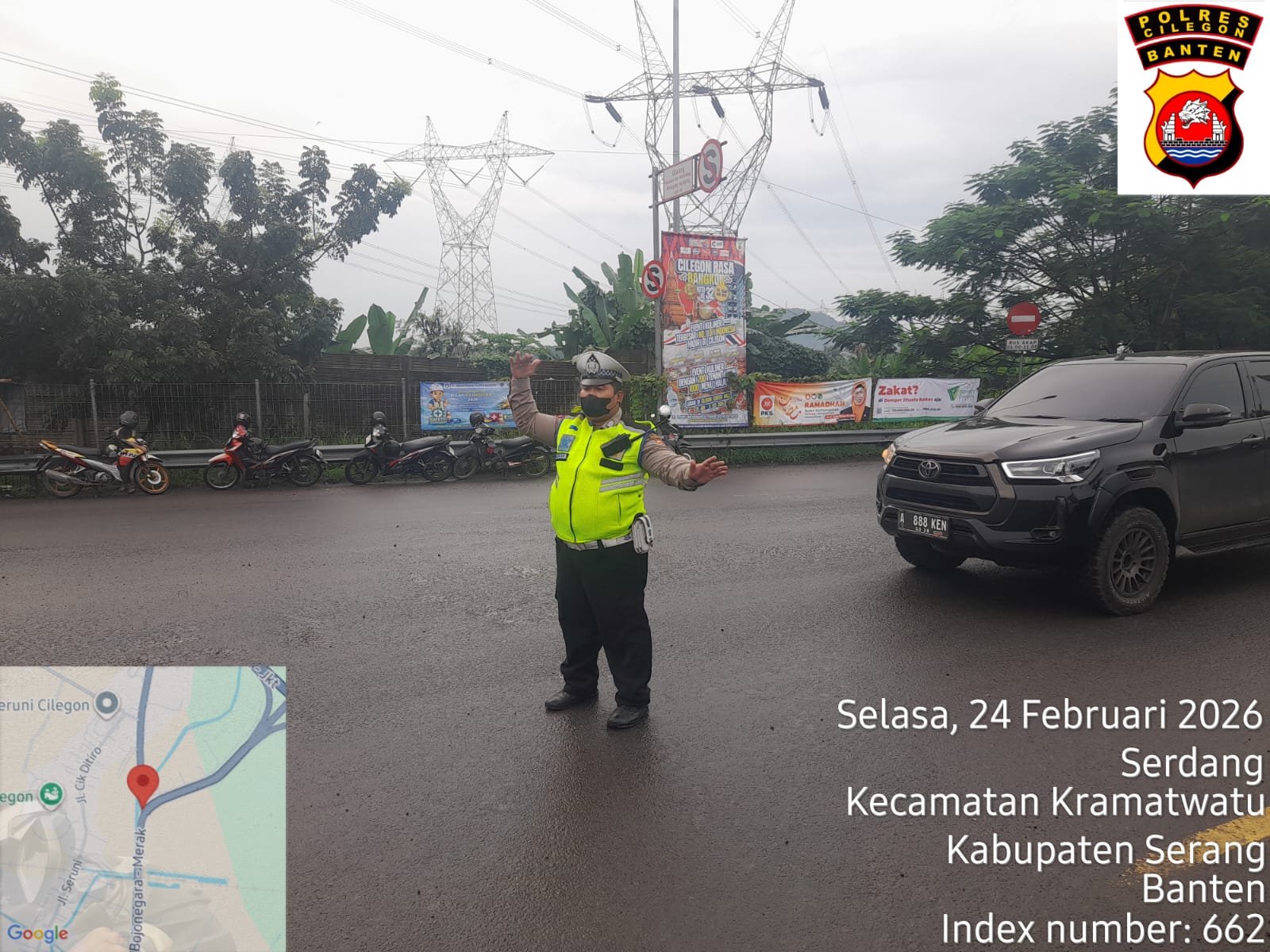 Cilegon, Satlantas Polres Cilegon Polda Banten – Berikan pelayanan kepada masyarakat Kasat lantas Polres Cilegon AKP Ridwan memerintahkan jajaran lalulintas untuk melaksanakan pengaturan lalu lintas di penggal – penggal jalan yang rawan kemacetan di Kota Cilegon, (Selasa,24/2/2026)