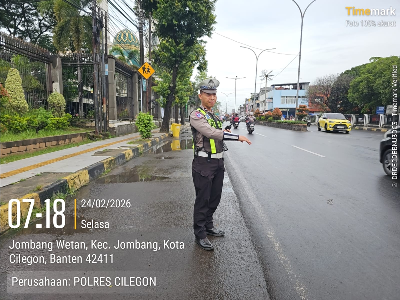 Cilegon, Satlantas Polres Cilegon Polda Banten – Berikan pelayanan kepada masyarakat Kasat lantas Polres Cilegon AKP Ridwan memerintahkan jajaran lalulintas untuk melaksanakan pengaturan lalu lintas di penggal – penggal jalan yang rawan kemacetan di Kota Cilegon, (Selasa,24/2/2026)