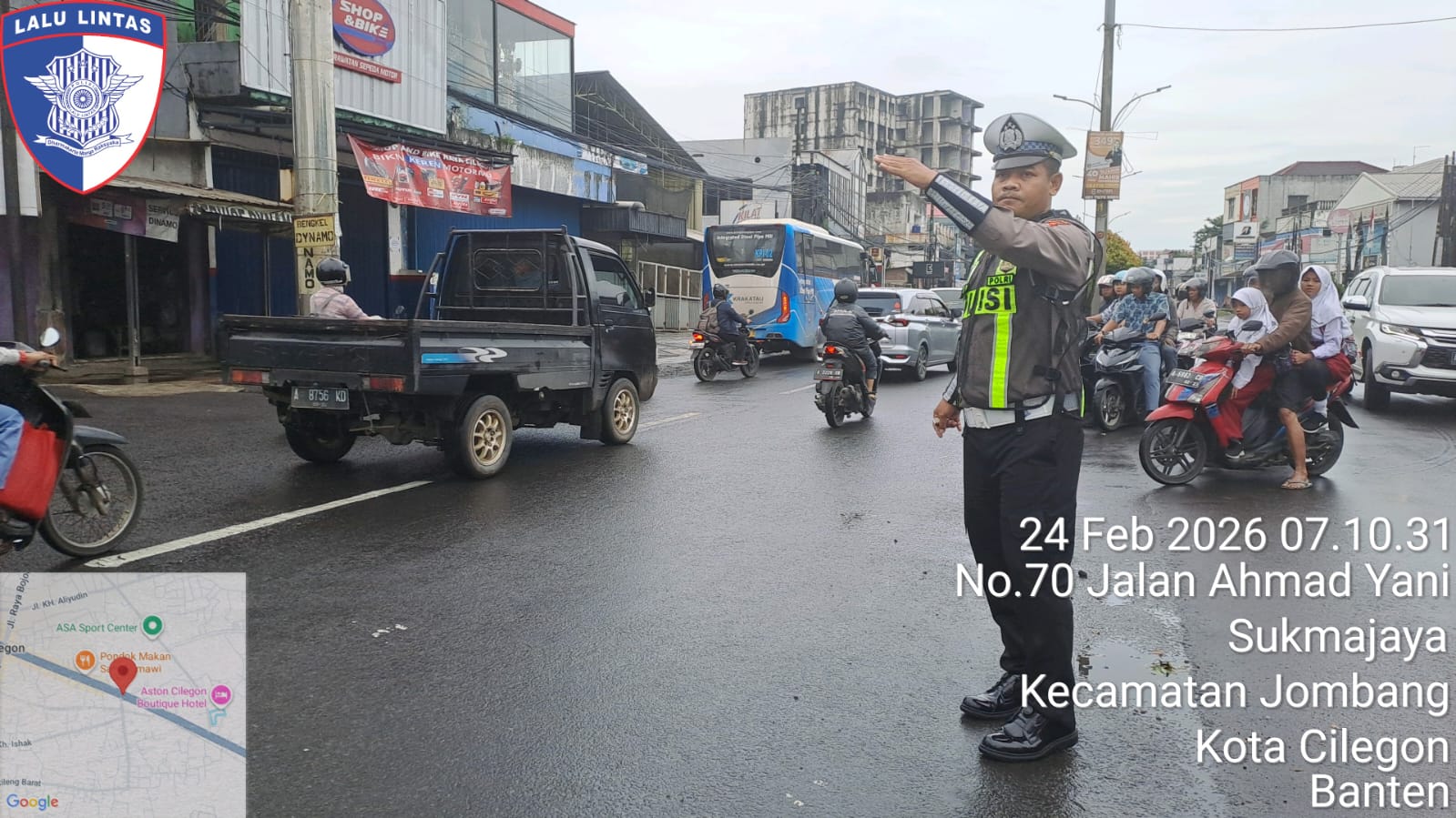 Cilegon, Satlantas Polres Cilegon Polda Banten – Berikan pelayanan kepada masyarakat Kasat lantas Polres Cilegon AKP Ridwan memerintahkan jajaran lalulintas untuk melaksanakan pengaturan lalu lintas di penggal – penggal jalan yang rawan kemacetan di Kota Cilegon, (Selasa,24/2/2026)