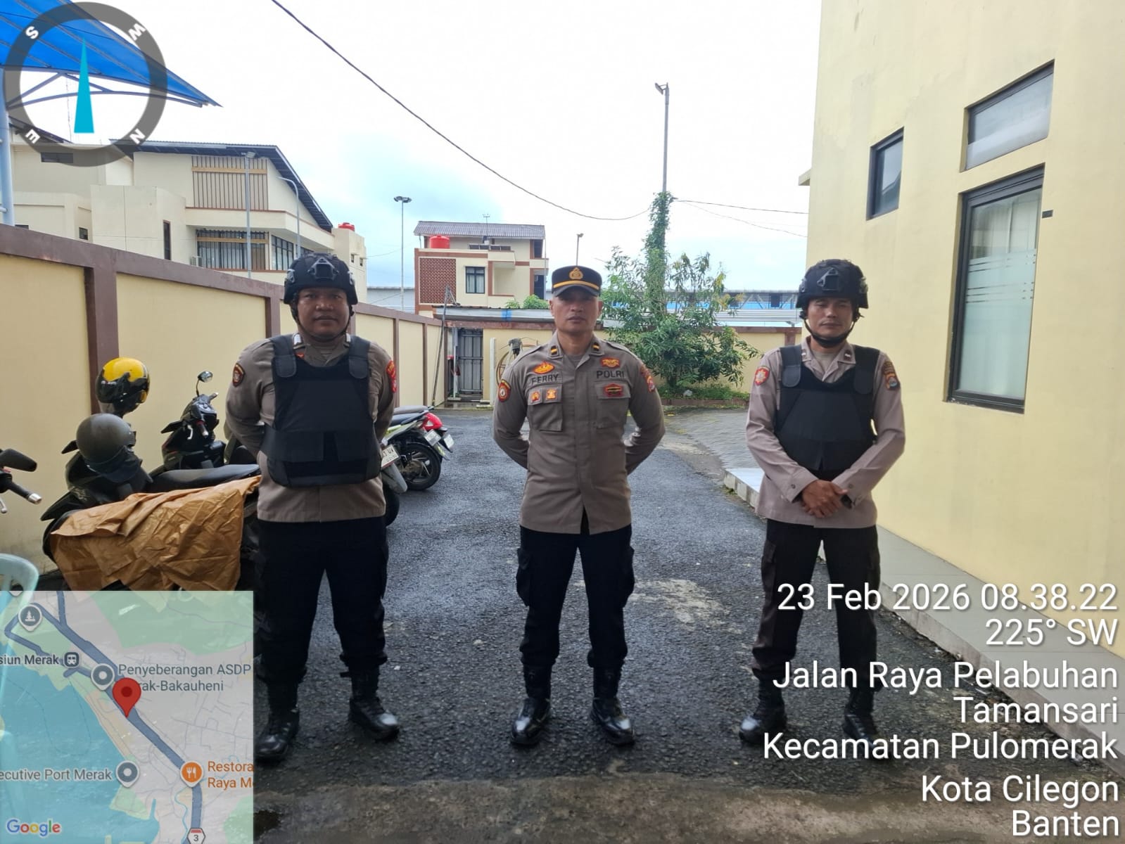 Cilegon - Personel piket jaga Polsek Kskp Merak Polres Cilgon Polda Banten melaksanakan siaga 1 Polsek pelaksanaan Sispam Mako oleh piket siaga dipimpin oleh Kspk Polsek Kskpy Merak Polres Cilegon Polda Banten, Senin (23/02/2026).