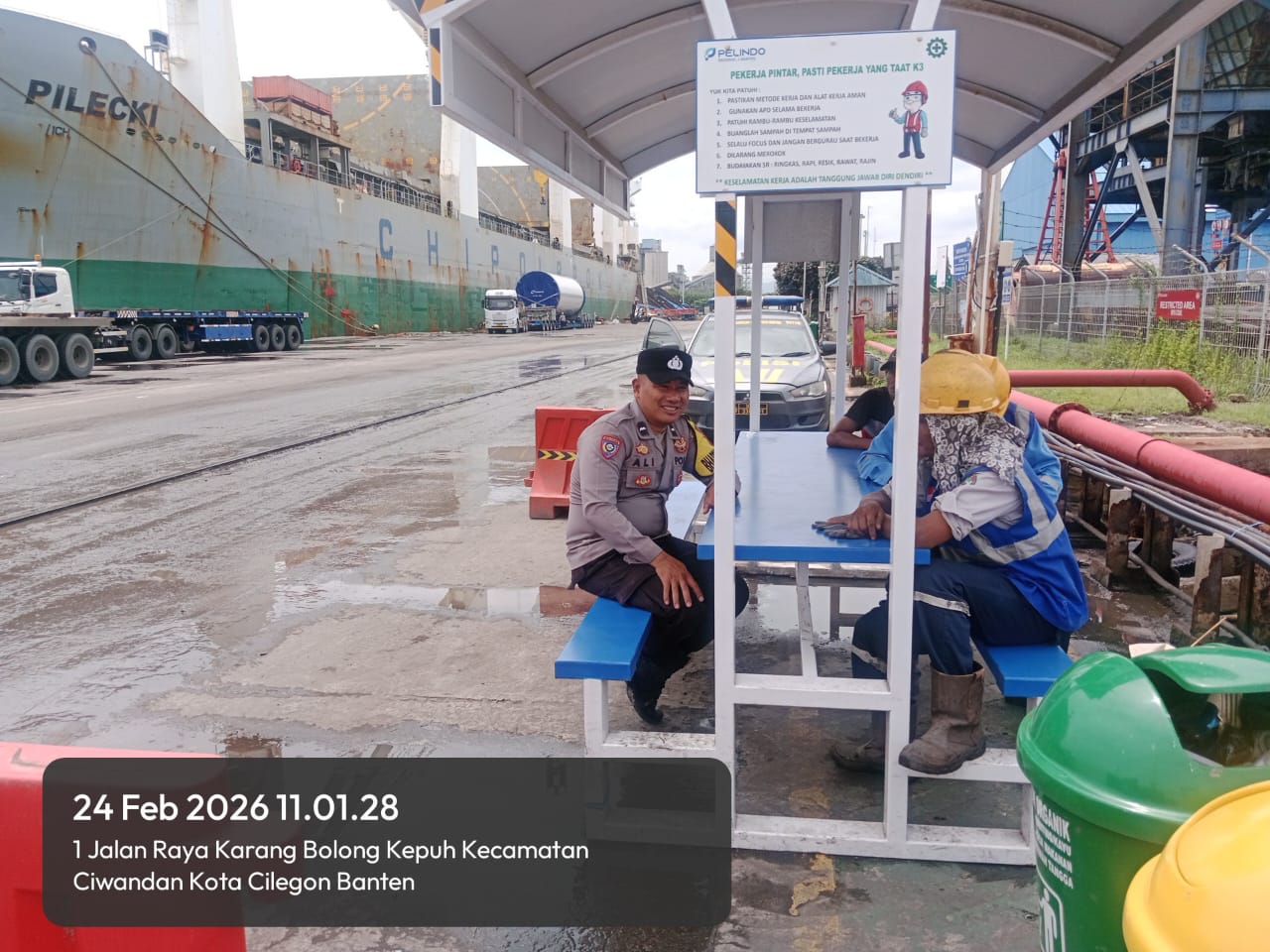 Anggota jaga melaksanakan Kegiatan patroli antisipasi pelaku asmoro dan bajing loncat kepada angkutan Truck bongkar muat dari pelabuhan. Adapun Kegiatan tersebut berupa patroli dari area dermaga pelabuhan hingga jalur perlintasan dan titik-titik kerawanan di areal PT. Pelindo Ciwandan.