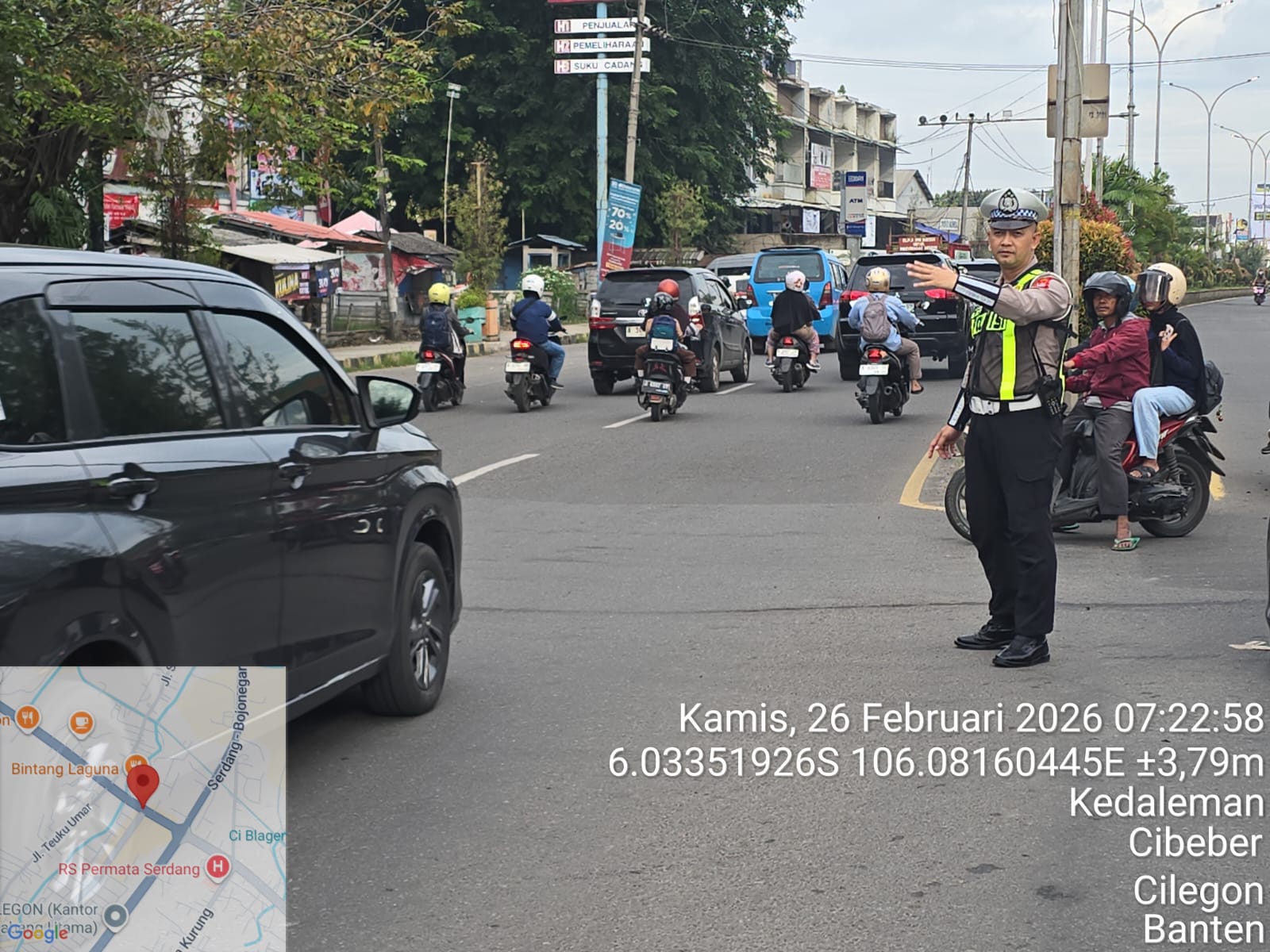 Cilegon – Polres Cilegon Polda Banten, Dalam Mewujudkan Aksi Nyata Pelayanan Kepada Masyarakat, Personil Satlantas Polres Cilegon Polda Banten Laksanakan PECAK (Pergelaran Cepat Anggota Kepolisian) Pengaturan Lalu lintas di wilayah perkotaaan terutama di titik rawan kemacetan dan kecelakaan lalu lintas, Kamis (26/02/2026).