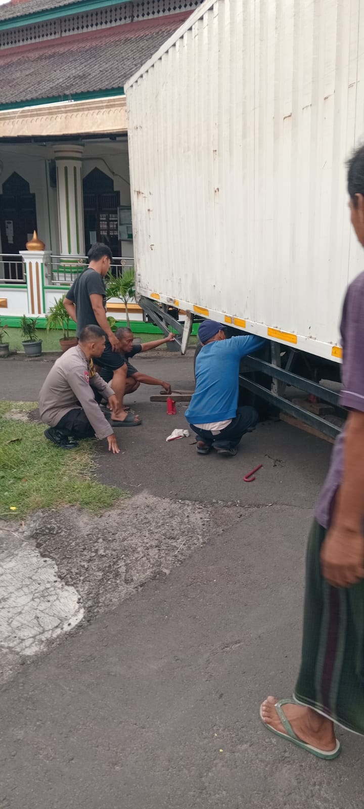 Bersama Masyarakat,Bhabinkamtibmas Bantu Evakuasi Mobil Box