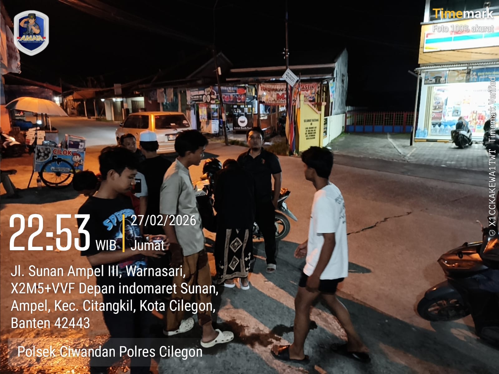 Cilegon - Dalam rangka menekan tindak kriminalitas serta untuk memberikan rasa aman dan nyaman kepada masyarakat terutama pada malam hari,Personil Polsek Ciwandan Polres Cilegon Polda Banten melakukan patroli malam hari di daerah-daerah yang rawan kriminalitas, Sabtu (28/02/2026).