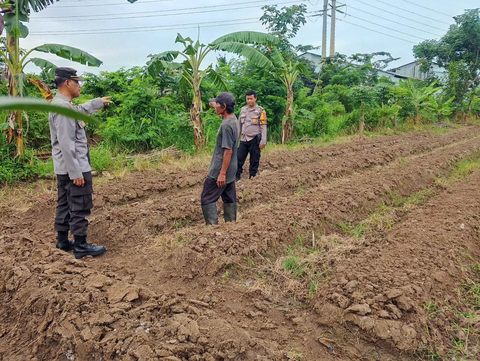 Cilegon - Dalam upaya mendukung program ketahanan pangan nasional Panit Binmas Polsek Ciwandan IPTU Mustriatno Bersama Bhabinkamtibmas Polsek Ciwandan Polres Cilegon Polda Banten AIPDA Mere Erlansyah melaksanakan kegiatan sambang dan kunjungan ke Lahan Produktif warga di lingkungan Kelurahan Warnasari kecamatan Citqngkil kota Cilegon, Senin (02/03/2026).