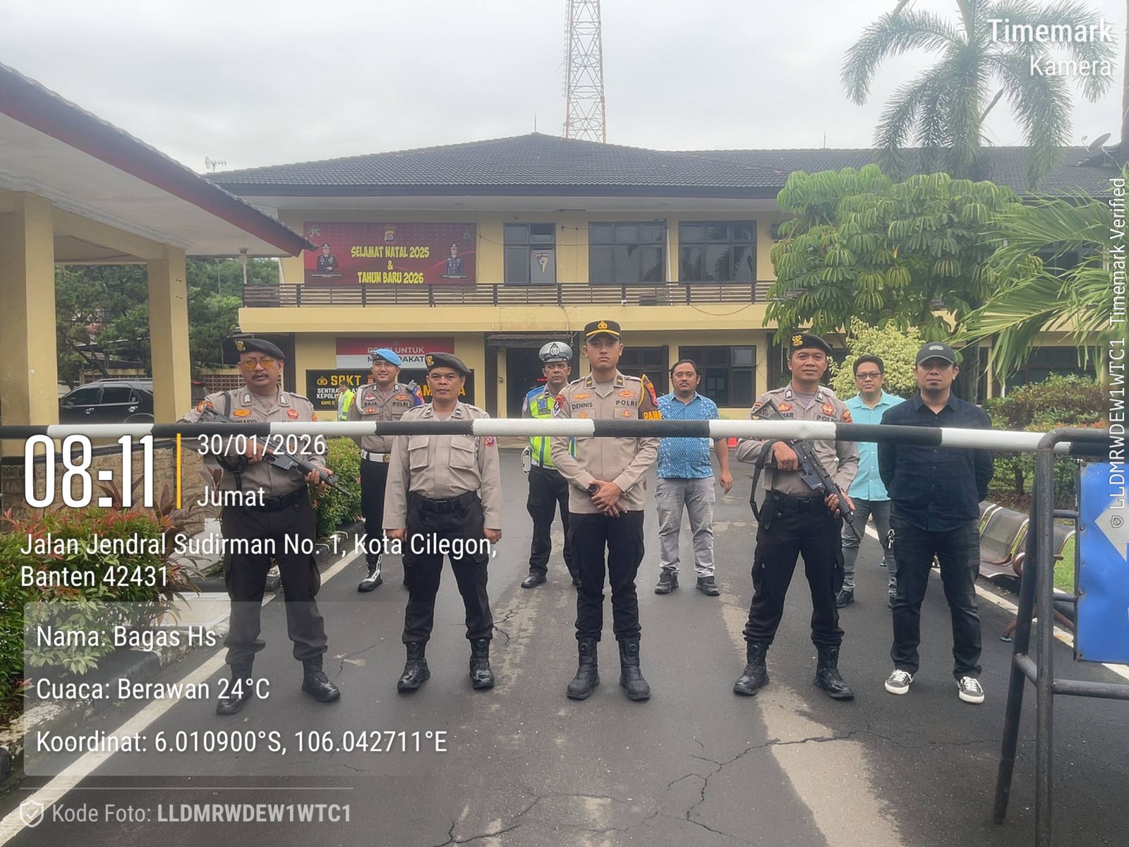 Kapolres Cilegon Polda Banten AKBP  Dr.Martua Raja Taripar Laut Silitonga melalui Kasatreskrim Polres Cilegon AKP Yoga Tama mengatakan, “kegiatan personel satreskrim polres cilegon melakukan piket di penjagaan pintu masuk Mako Polres Cilegon mengantisipasi adanya kejahatan yang menggangu kenyamanan dan keamanan mako Polres Cilegon dalam melakukan pelayanan kepada masyarakat kota Cilegon".