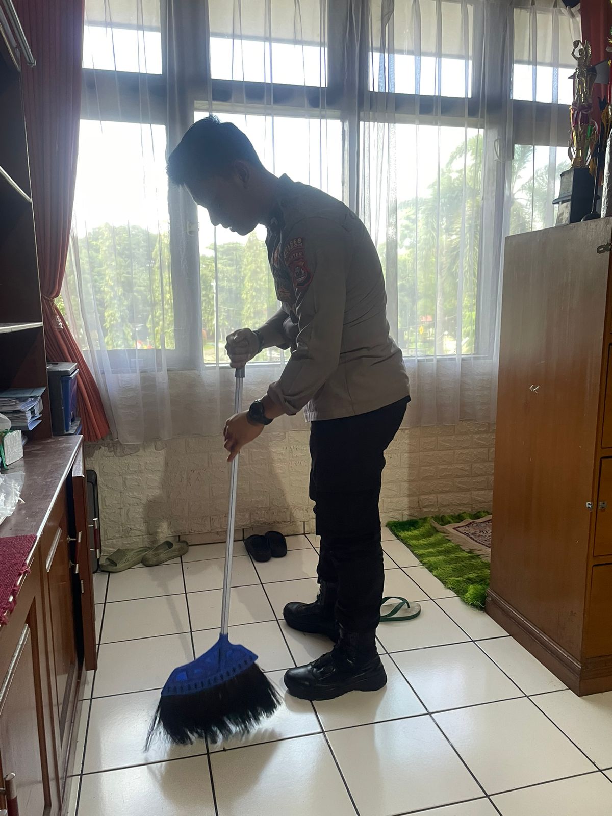 Anggota Bag SDM Polres Cilegon, Selalu akttif dalam melaksankan kegiatan membersihkan ruangan kerja secara rutin.