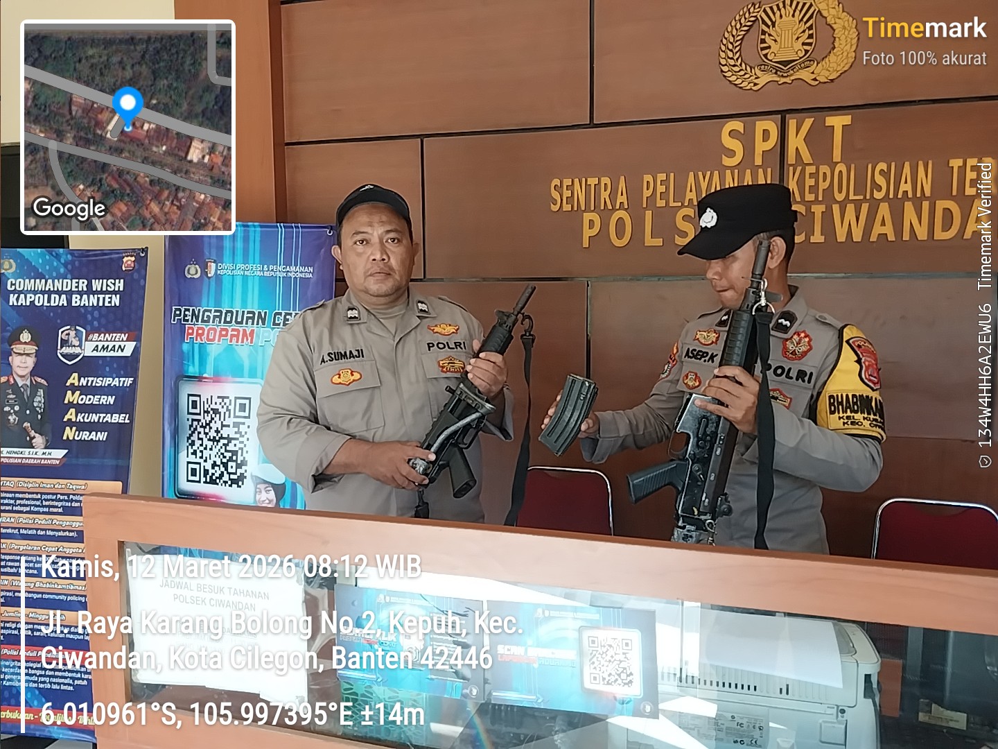 Kapolres Cilegon Polda Banten AKBP Dr. Martua Raja Taripar Laut Silitonga Melalui Kapolsek Ciwandan Polres Cilegon Polda Banten KOMPOL Achri Dwi Yunito Menekankan dan menegaskan dalam serah terima tugas jaga Mako dan pelayanan KA-SPKT wajib mengecek barang Inventaris mulai dari Senpi Dinas, Mobil Patroli, serta barang Inventaris lainya termasuk Mako apabila ada hal yang tidak sesuai wajib di cek secara seksama sehingga sewaktu serah terima tidak ada yang terabaikan dan dapat dipertanggung jawabkan, ungkapnya.