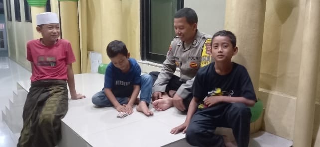 Bhabinkamtibmas Bripka Agustoni dari Polsek Purwakarta, Polres Cilegon, melaksanakan kegiatan positif di Masjid Baiturrohman, Lingkungan Leuweungsawo, RT.01 RW.09, Kelurahan Kotabumi, Kecamatan Purwakarta, Kota Cilegon