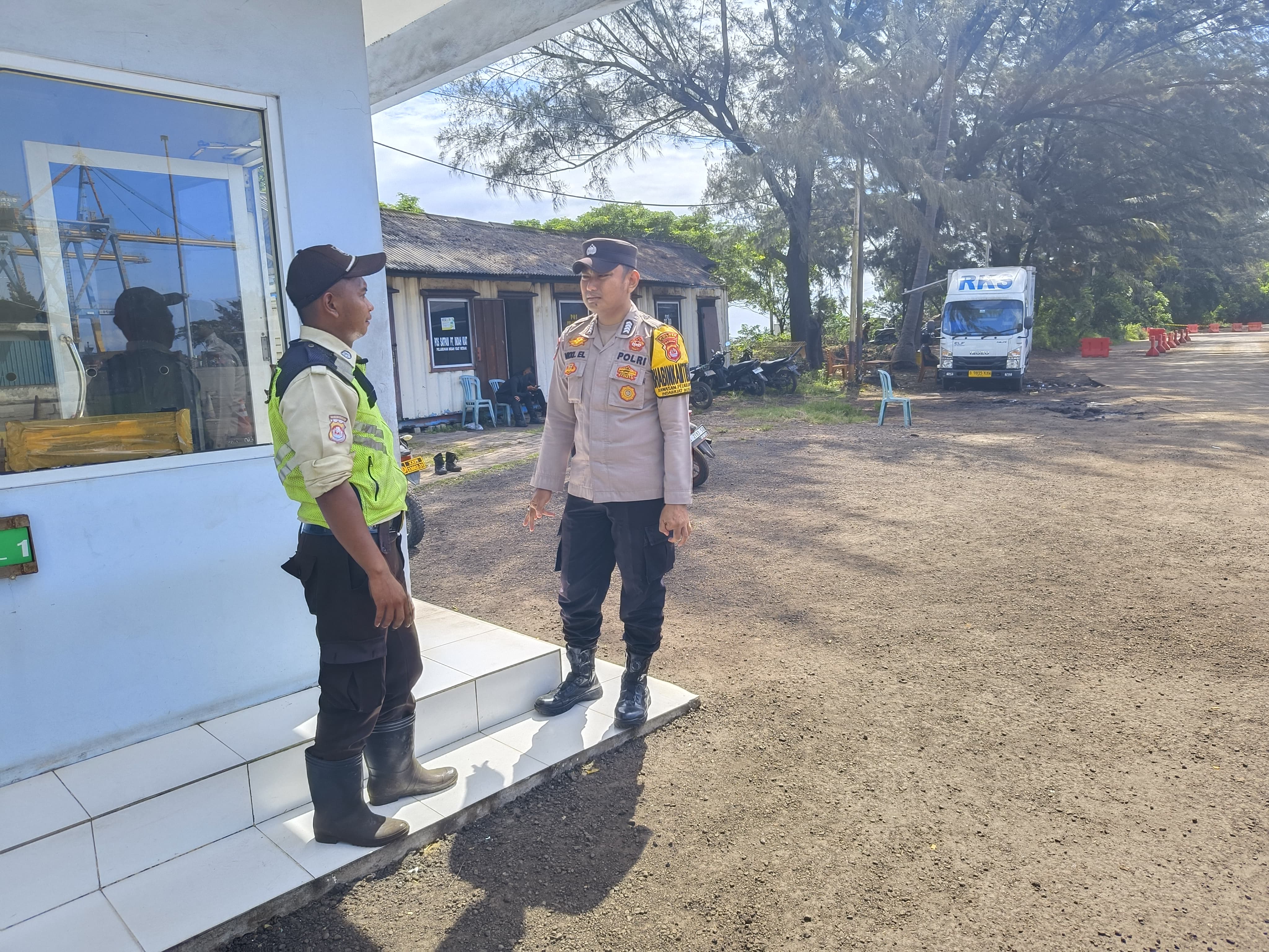 Kapolres Cilegon Polda Banten AKBP Martua Raja Taripar Laut Melalui Kapolsek Kskp Banten Polres Cilegon Polda Banten AKP Fredo Leonard Mengatakan Personil Polsek Kskp Banten Rutin menyambangi anggota Security dan memberikan himbauan agar para anggota Security bisa melaksanakan tugas menjaga keamanan di lingkungan Kawasan Pelabuhan.