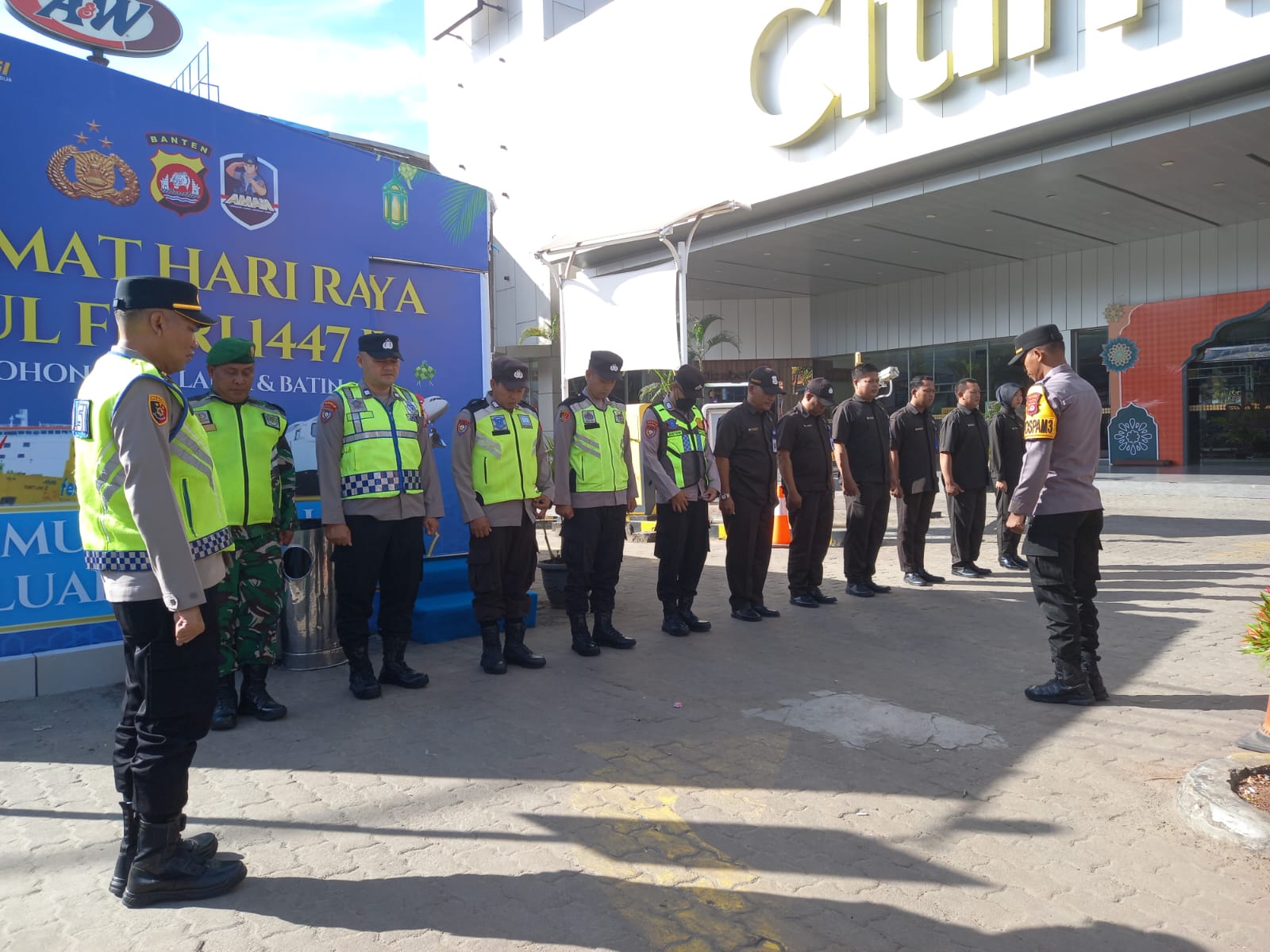 -Polres Cilegon- Polda Banten. Dalam rangka memastikan keamanan dan kelancaran aktivitas masyarakat menjelang Hari Raya Idul Fitri 1447 H, Kapolsek Purwakarta IPTU Sukanda melakukan apel pengaturan personel di Pos Pam 3 Landmark, Cilegon, pada hari ini.kamis. (19/03/2026).