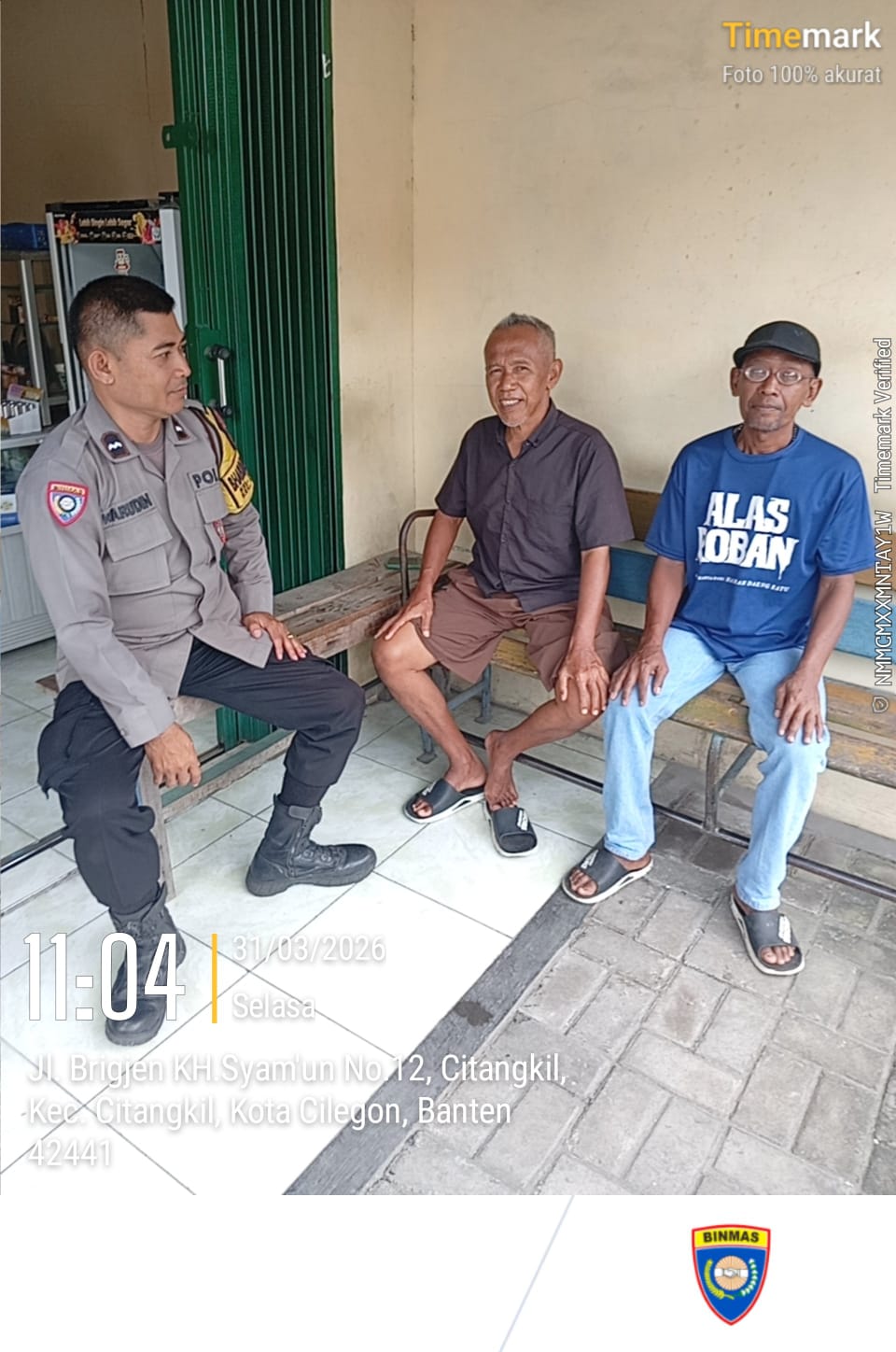 Cilegon - Bhabinkamtibmas Polsek Ciwandan Polres Cilegon Polda Banten merupakan ujung tombak kepolisian yang bersentuhan langsung dengan masyarakat guna menciptakan situasi kamtibmas yang aman dan kondusif, Selasa (31/03/2026).