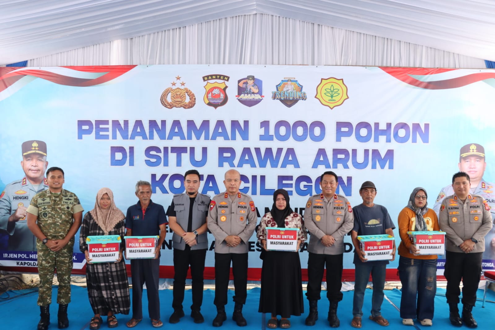 Dalam rangka mendukung program gerakan Indonesia Aman Sehat Resik Indah (ASRI), Kapolda Banten bersama Walikota Cilegon melakukan penanaman 1000 pohon di kawasan Situ Rawa Arum, Kota Cilegon, Provinsi Banten, pada Jumat (17/4/2026).