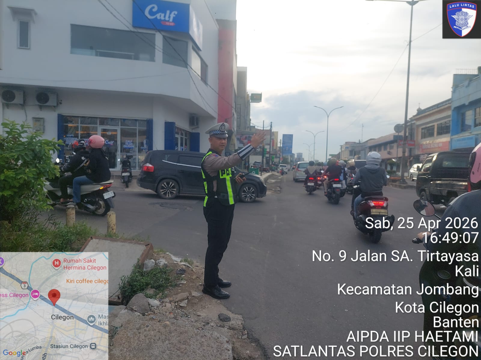 Cilegon – Polres Cilegon Polda Banten, Dalam Mewujudkan Aksi Nyata Pelayanan Kepada Masyarakat, Personil Satlantas Polres Cilegon Polda Banten Laksanakan PECAK (Pergelaran Cepat Anggota Kepolisian) Pengaturan Lalu lintas di wilayah perkotaaan terutama di titik rawan kemacetan dan kecelakaan lalu lintas, Sabtu (25/04/2026).