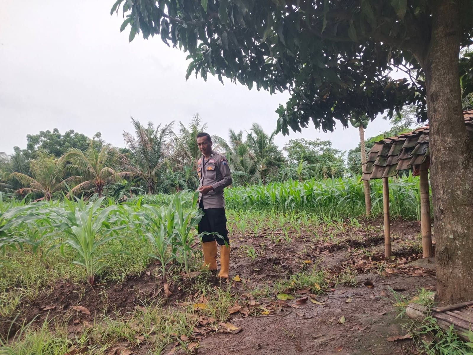 Pantau lahan jagung pok tani sinarjaya kecamatan.puloampel Desa Banyuwangi oleh Bhabinkamtibmas Polsek Puloampel