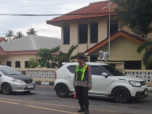 Bantu lancarkan arus lalulintas lantas Polsek Pulomerak lakukan pengaturan lalin