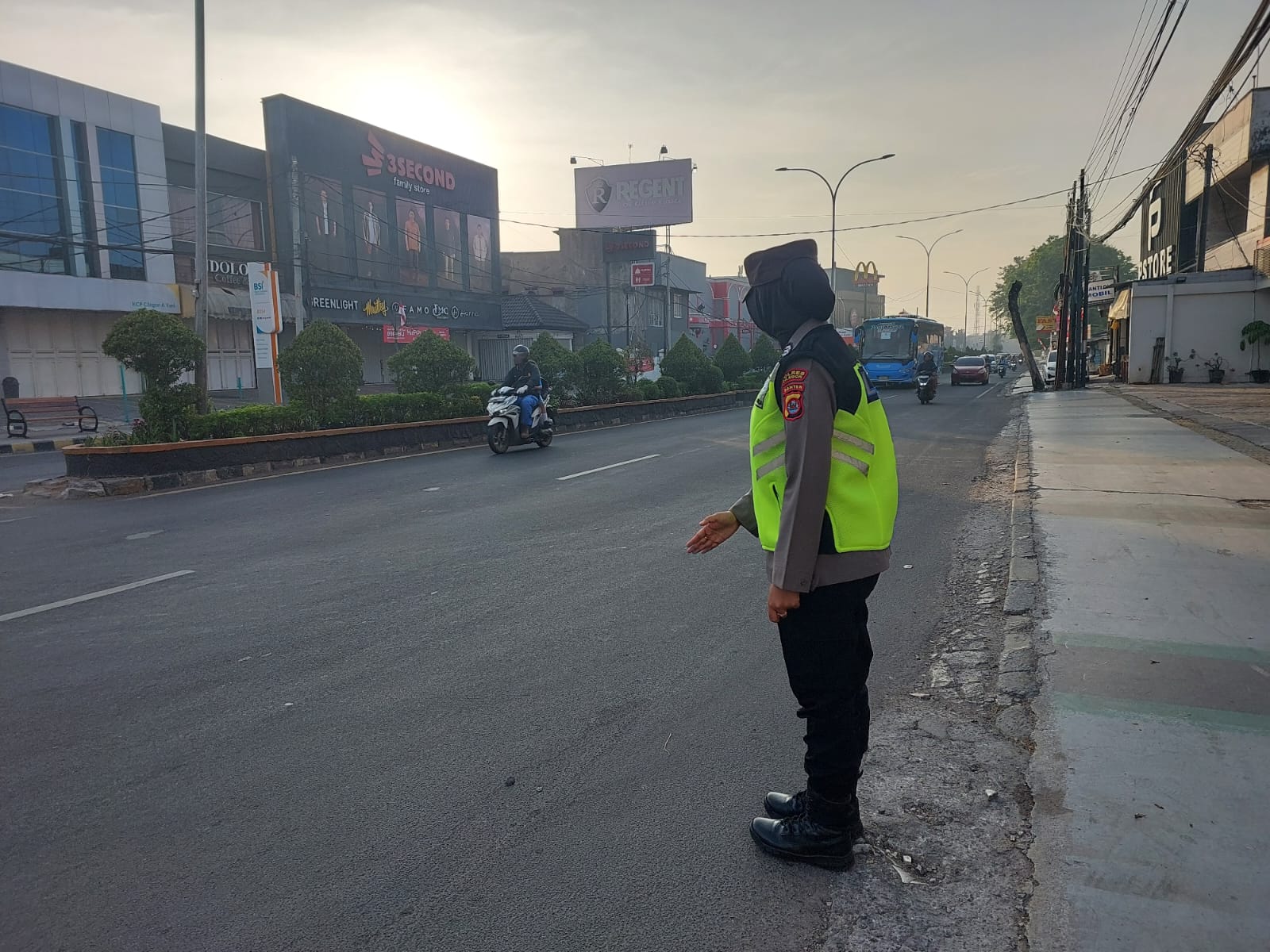 Polres Cilegon Hadir Pagi Hari, Pastikan Arus Lalin di Simpang Jombang Lancar