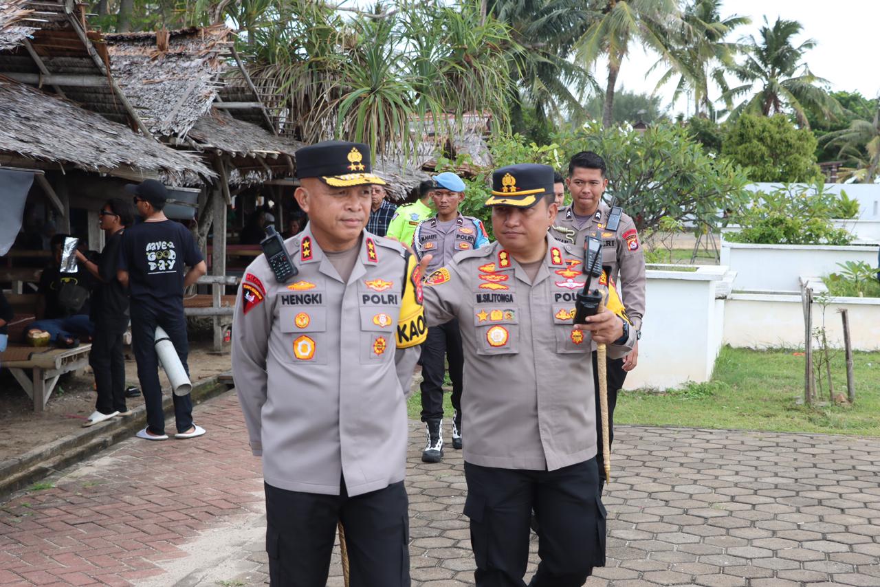 Dilanjutkan pada pukul 14.30 WIB, Kapolda melakukan pengecekan menyeluruh terhadap kesiapan Pos Pengamanan dan sarana pendukung di kawasan pantai. Dalam arahannya, Kapolda menegaskan pentingnya profesionalisme, tanggung jawab, serta menjaga kesehatan dalam pelaksanaan tugas. Personel diminta senantiasa memberikan pelayanan yang ramah dan humanis kepada pengunjung, waspada terhadap situasi sekitar, serta aktif memantau informasi cuaca melalui BMKG untuk kemudian disampaikan kepada masyarakat sebagai langkah antisipasi potensi bencana.