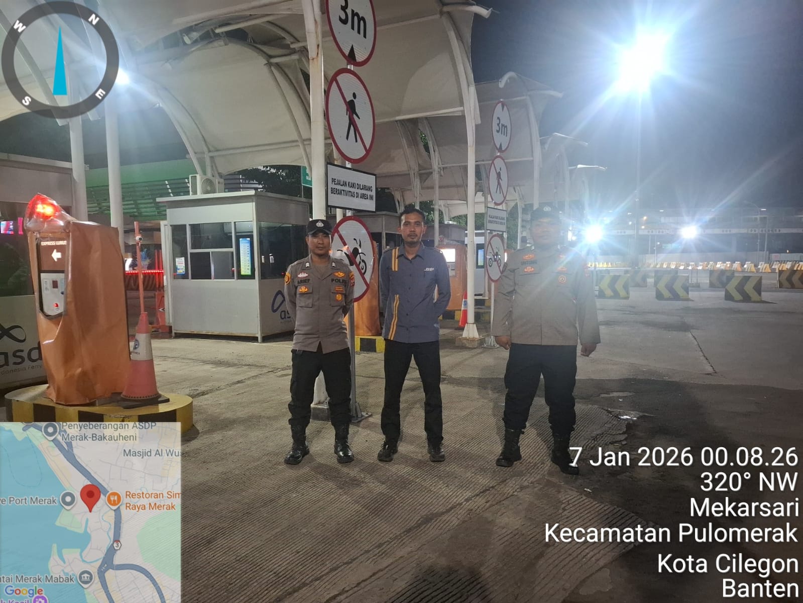 Cilegon - Personil Polsek Kskp Merak Polres Cilegon melaksanakan patroli di kawasan pelabuhan merak memberikan rasa aman dan damai, Rabu (07/01/2026)