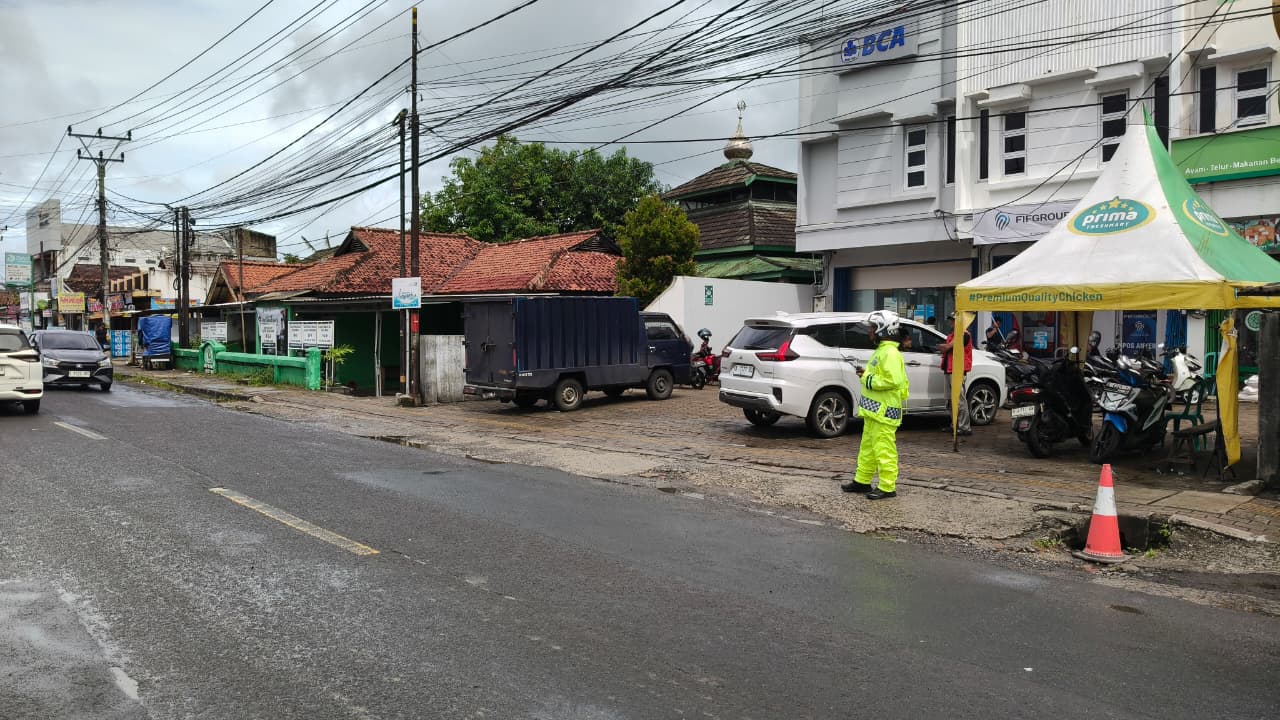 Pantauan media, petugas mengatur kendaraan di depan beberapa titik usaha dan perkantoran yang padat aktivitas, serta membantu pengendara menyesuaikan laju kendaraan di tengah kondisi jalan yang basah. Selain itu, petugas juga melakukan pemantauan terhadap kendaraan roda dua dan roda empat agar tertib berlalu lintas.