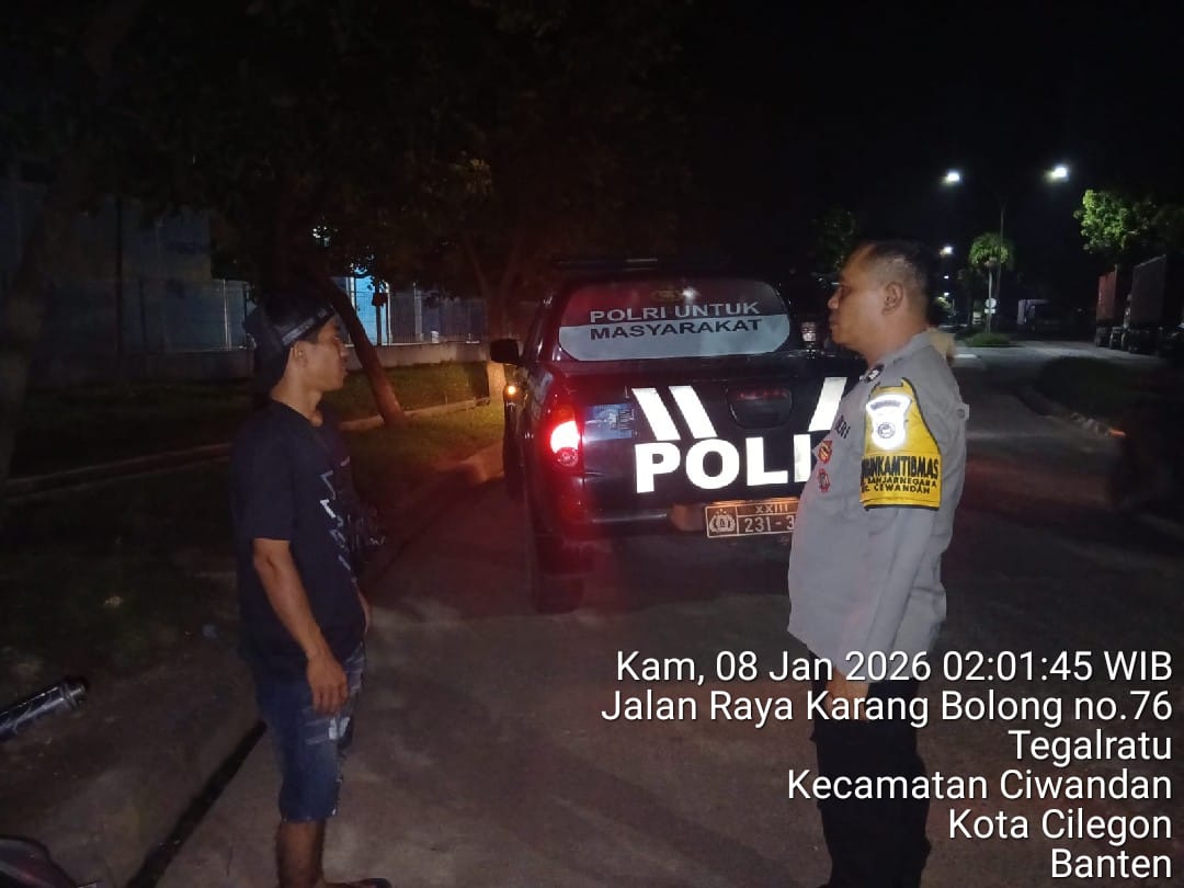 Cilegon - Dalam rangka menekan tindak kriminalitas serta untuk memberikan rasa aman dan nyaman kepada masyarakat terutama pada malam hari,Personil Polsek Ciwandan Polres Cilegon Polda Banten melakukan patroli malam hari di daerah-daerah yang rawan kriminalitas, Kamis (08/01/2026).