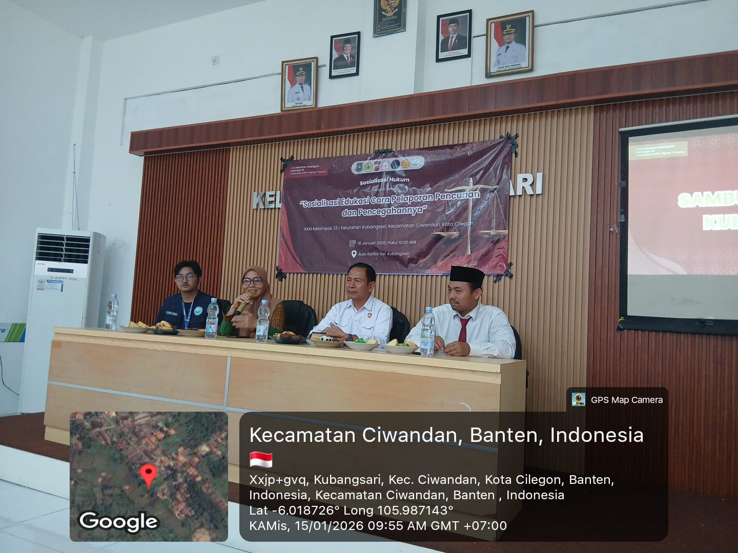Cilegon - Bhabinkamtibmas Kelurahan Kubangsari AIPDA Asep Karyudin, menghadiri acara sosialisasi edukasi cara pelaporan pencurian dan pencegahannya di Kantor Aula Kelurahan Kubangsari, Ciwandan. Kamis (15/01/2026).
