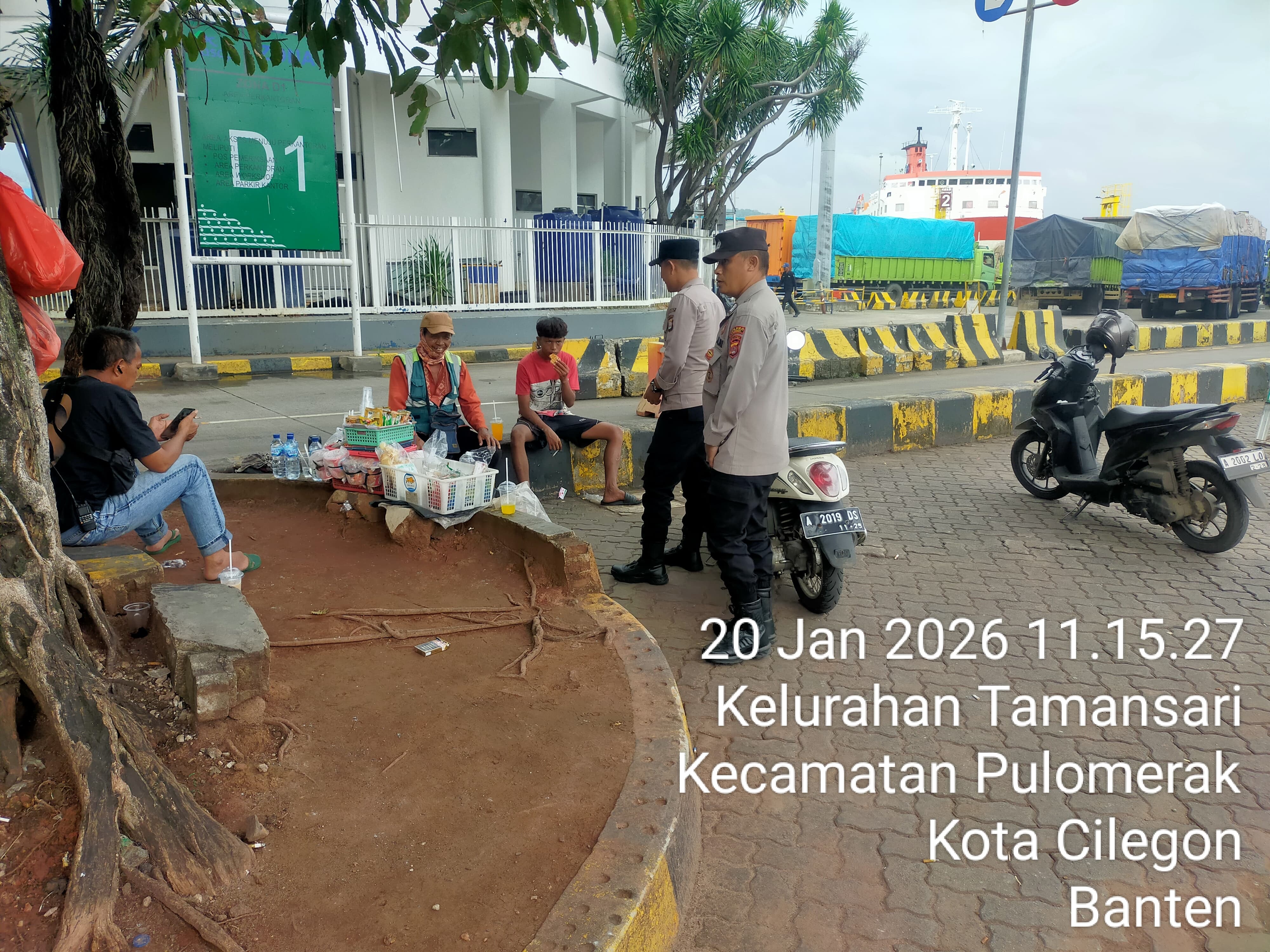 Cilegon - Personel Polsek Kskp Merak Polres Cilegon Polda Banten melaksanakan sambang dan patroli kawasan pelabuhan merak dalam rangka menjaga Harkamtibmas di Kawasan Pelabuhan Merak, Selasa  (20/01/2026).
