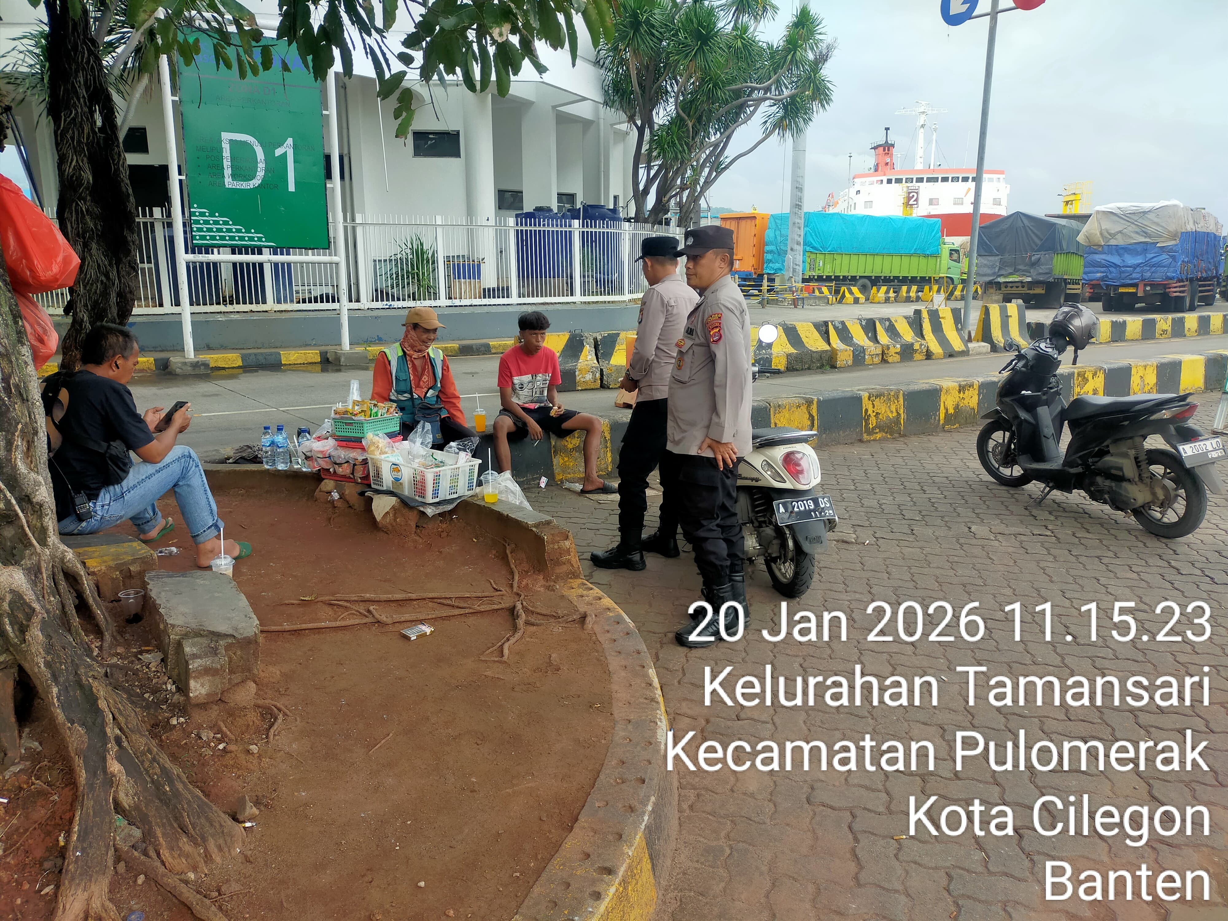 Cilegon - Personel Polsek Kskp Merak Polres Cilegon Polda Banten melaksanakan sambang dan patroli kawasan pelabuhan merak dalam rangka menjaga Harkamtibmas di Kawasan Pelabuhan Merak, Selasa  (20/01/2026).